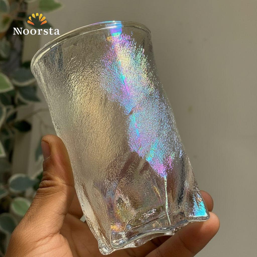 كوب زجاجي "أورورا" بتصميم جليدي ولمعة قزحية