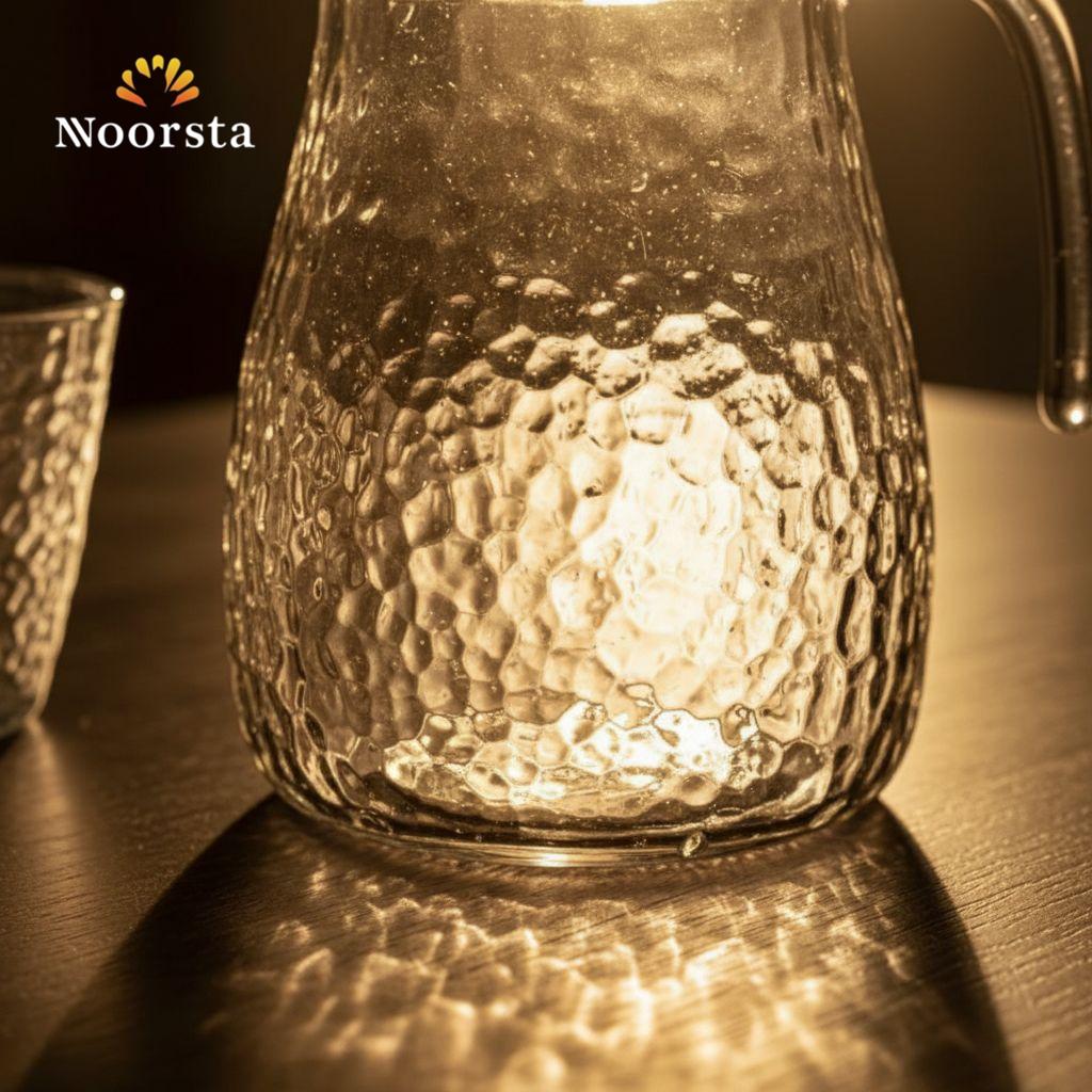 حولي تقديم المشروبات اليومية إلى لوحة فنية مع طقم الكريستال بنقش الجليد من نورستا. مستوحى من جمال الطبيعة والنقاء، يتميز هذا الطقم بملمس زجاجي فريد يعكس الضوء ببراعة، مما يجعل الماء أو العصائر تتلألأ بداخلها. سواء كان على مائدة الإفطار أو لضيافة الضيوف في المساء، يضيف هذا الطقم لمسة من الفخامة والذوق الرفيع لمنزلك.