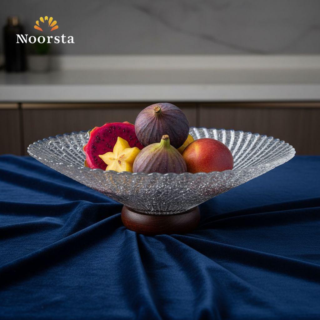 وعاء تقديم فاخر من الزجاج الكريستالي المحبب مع قاعدة خشبية