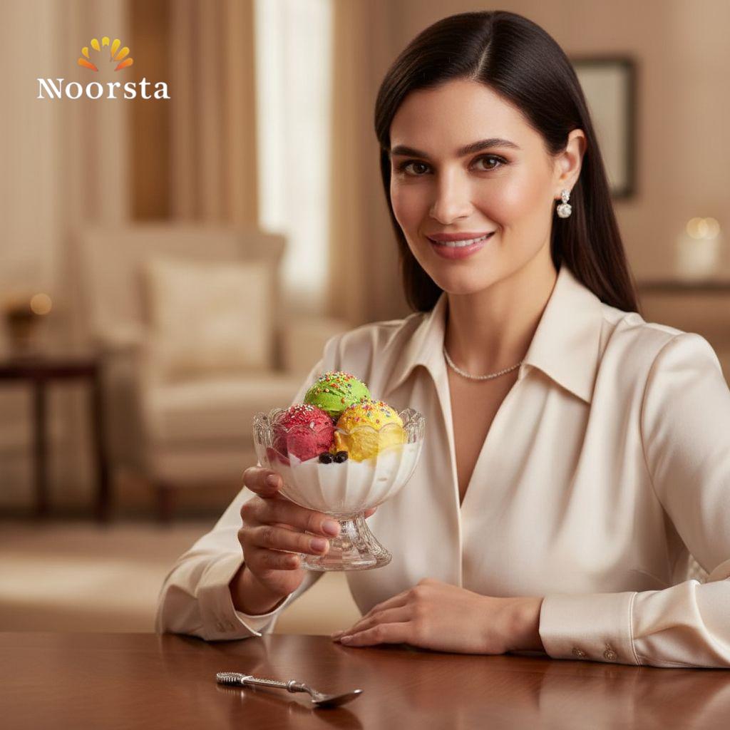 حجم مثالي للحصص الفردية من الآيس كريم، الزبادي بالفواكه، الكوكتيل، أو الرز باللبن والمهلبية.