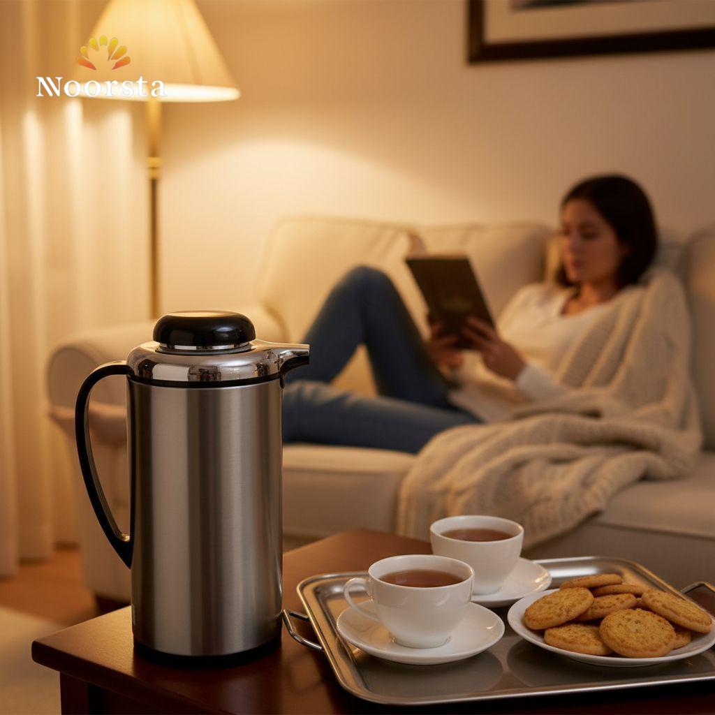 ارتقِ بتجربة الضيافة اليومية مع الترمس الحراري الفاخر من الستانلس ستيل، الذي يجمع بين الأناقة الكلاسيكية والأداء الحراري المتفوق. تم تصميمه ببراعة ليكون أكثر من مجرد وعاء للتقديم؛ فهو قطعة فنية تزين طاولتك وتعكس ذوقك الرفيع. مصنوع من أجود أنواع الستانلس ستيل المصقول بلمسة نهائية تشبه المرآة، ليضمن لك متانة تدوم طويلاً ومظهرًا يخطف الأنظار.
