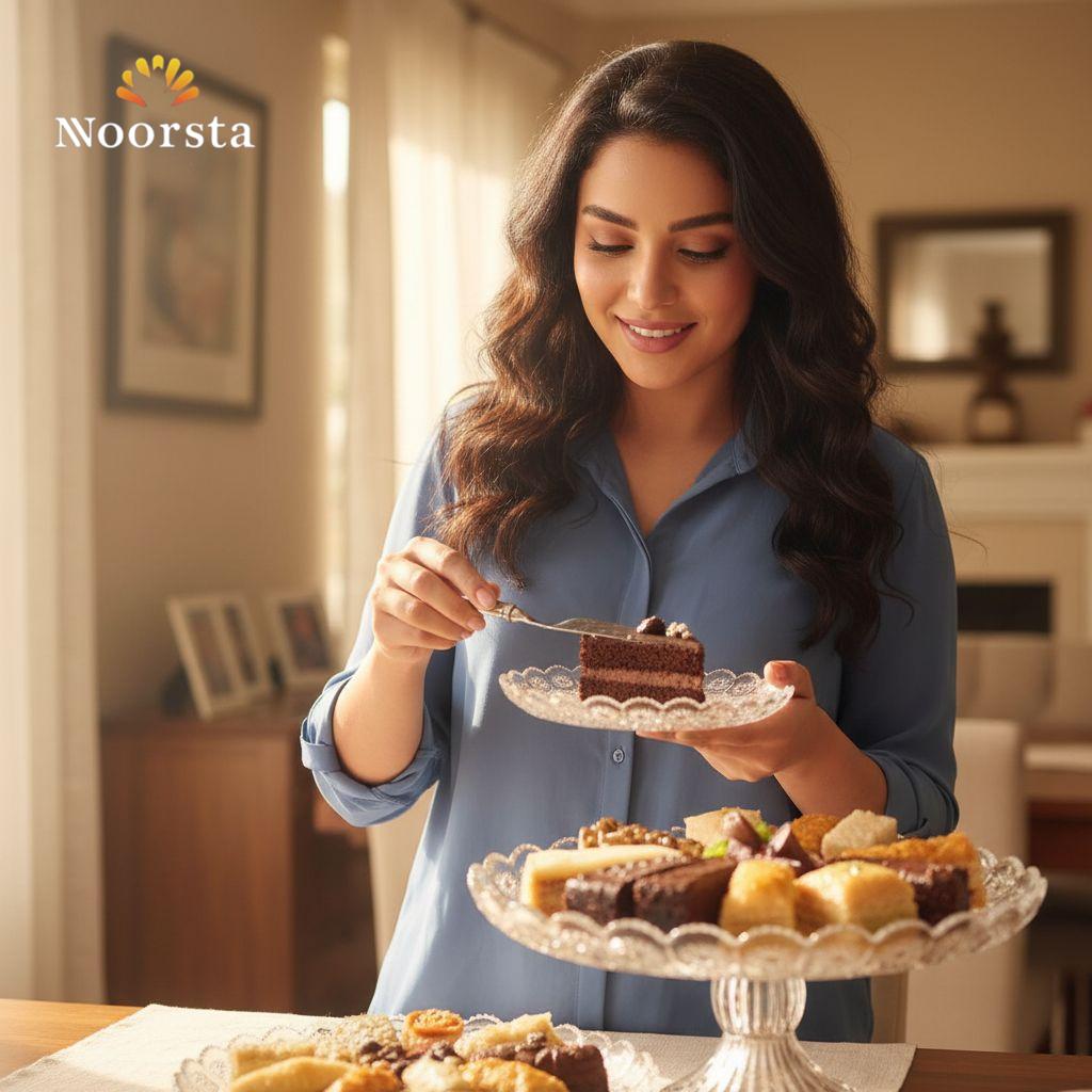 Whether you are serving a birthday cake, delicate pastries, or festive Kahk, the centerpiece stand elevates your creation, while the matching plates ensure every guest feels like royalty. It is not just tableware; it is the sparkling heart of your gathering.