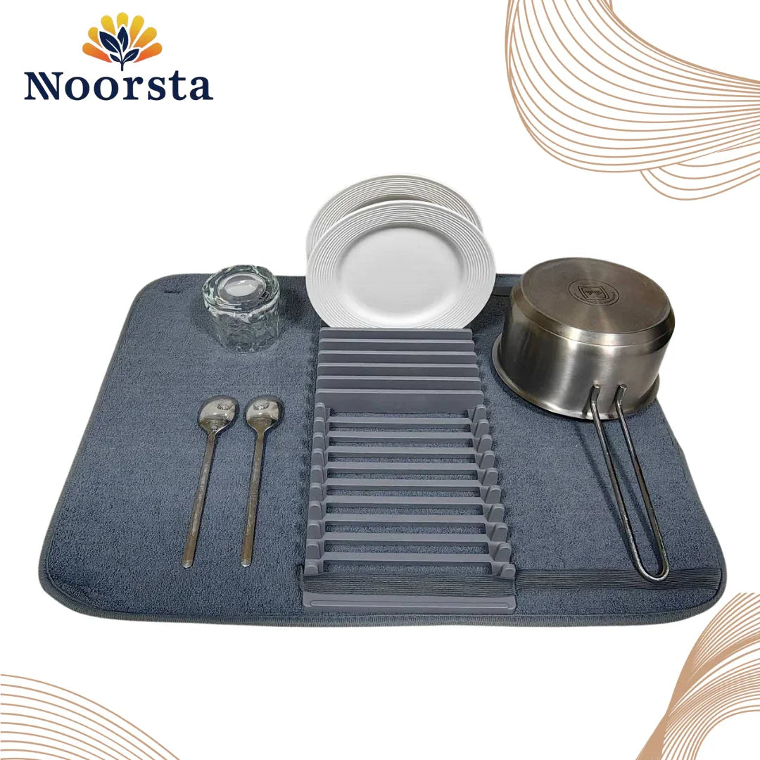 ✅ All-in-one drying system: Rack and mat combined — ideal for plates, glasses, and utensils.